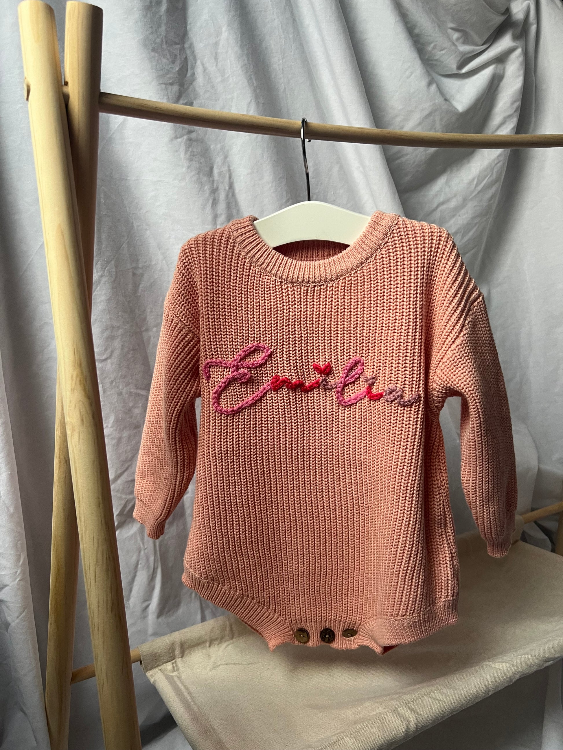 A cozy, hand-crafted baby romper designed to grow with your little one. Made from premium, soft yarn, it features adjustable cuffs and a comfortable, stretchy fit that lasts through multiple sizes. This versatile romper combines practicality with adorable style, perfect for everyday wear or special occasions. Its timeless design makes it an ideal gift for baby showers, christenings, or welcoming a newborn into the world.
